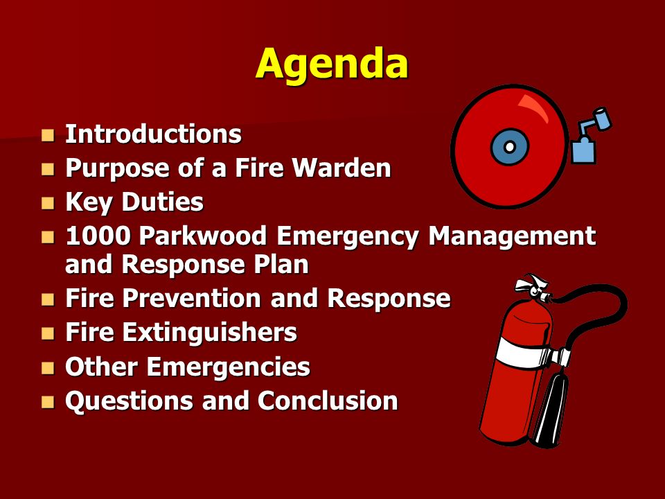 - Help prevent emergencies by monitoring the adequacy of the fire risk control measures;